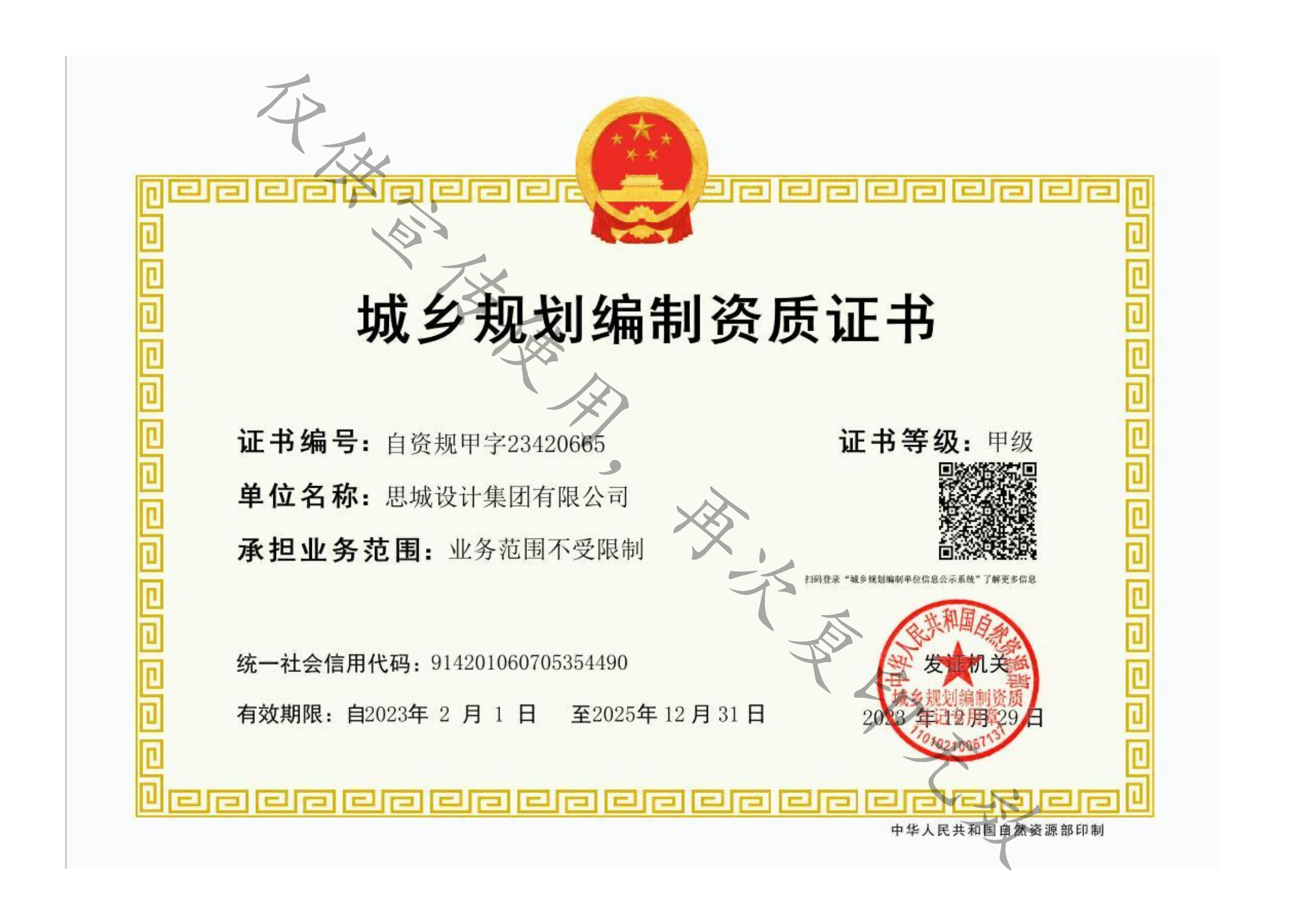 • 城鄉規劃編制資質證書